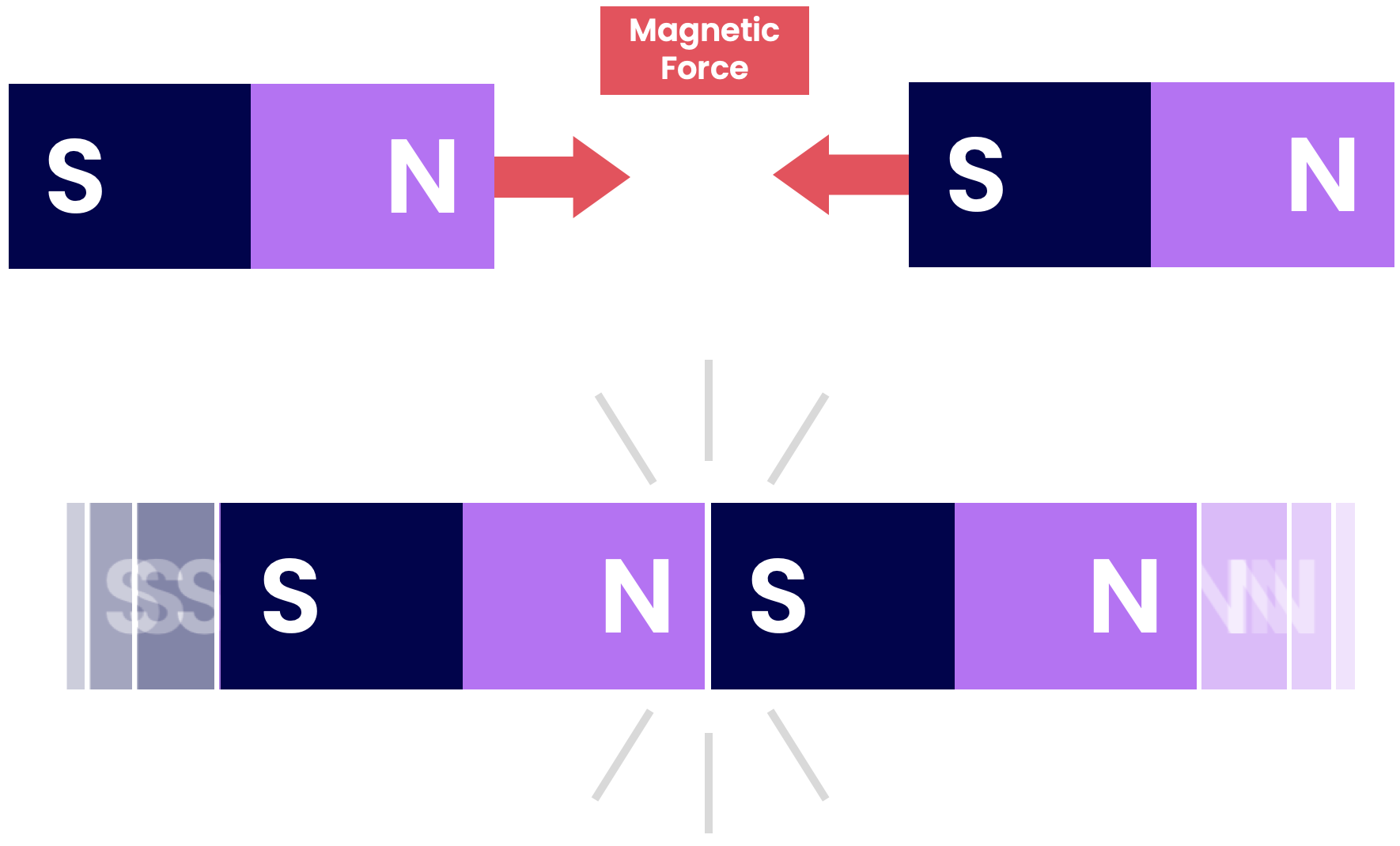 (NB: The arrows indicate the direction of the magnetic force acting on each magnet)